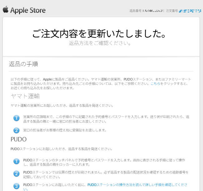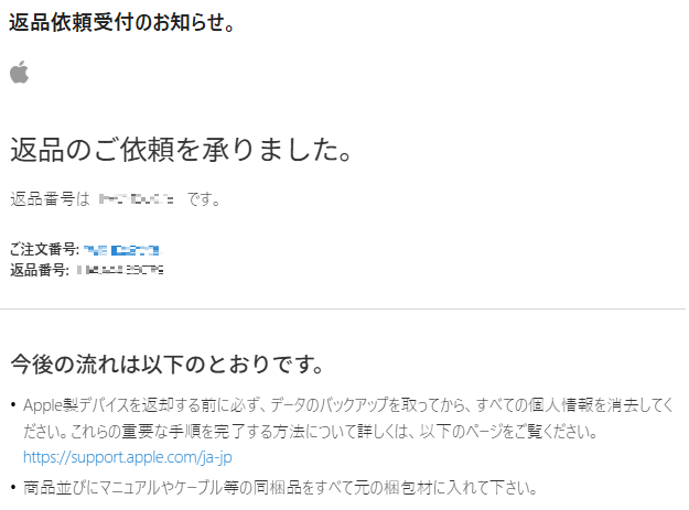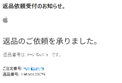 Apple Storeの購入履歴から返品申請をすると最初に届く「返品依頼受付」メール。