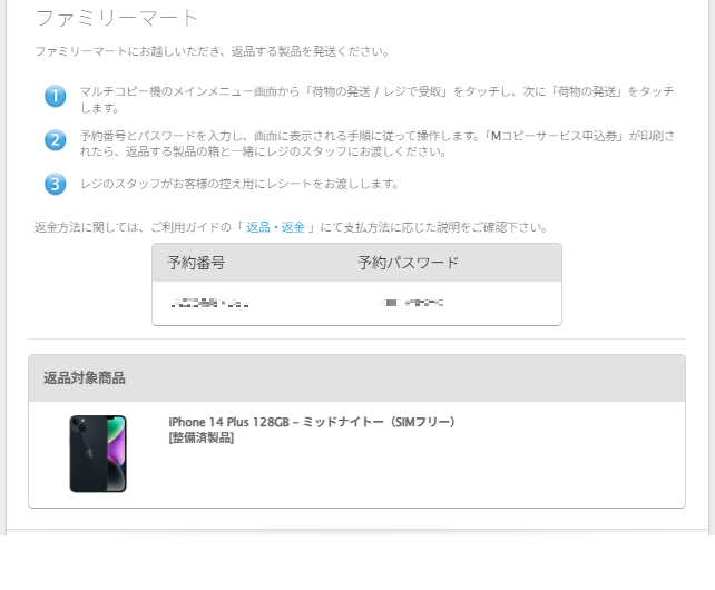 諸事情で購入した整備済品iPhone14Plusの返品をお願いすることになりました。