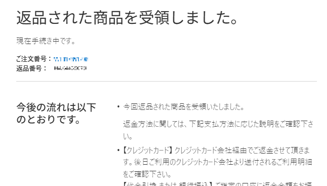 返送品に問題が無ければ受領→返金手続きと進みます。