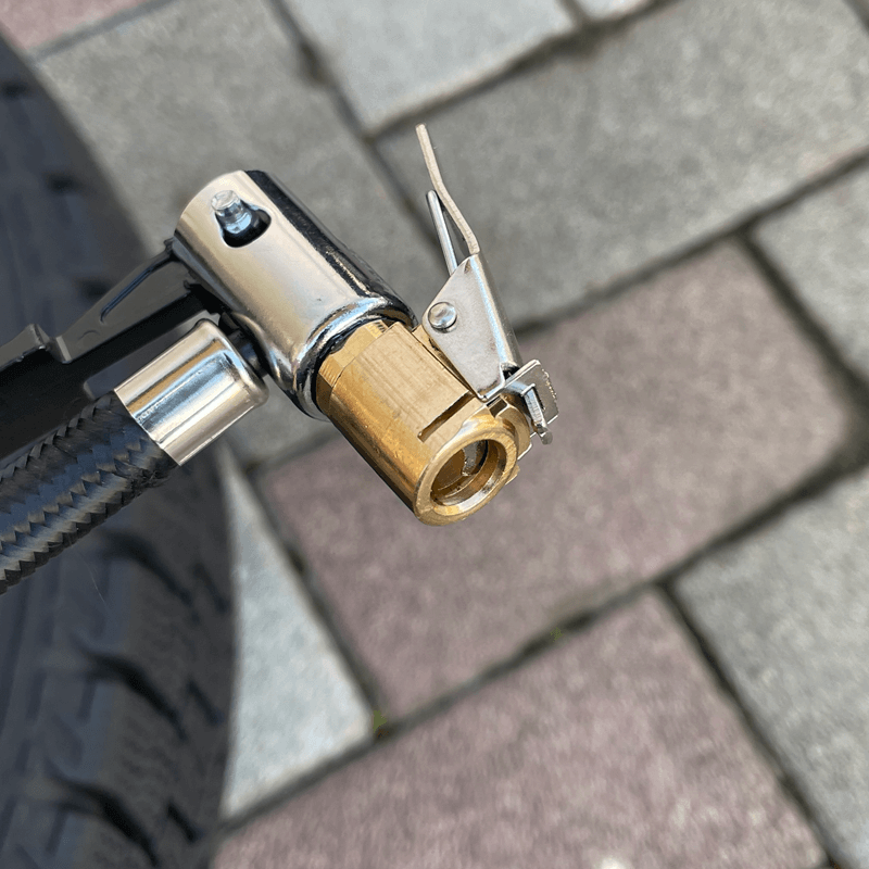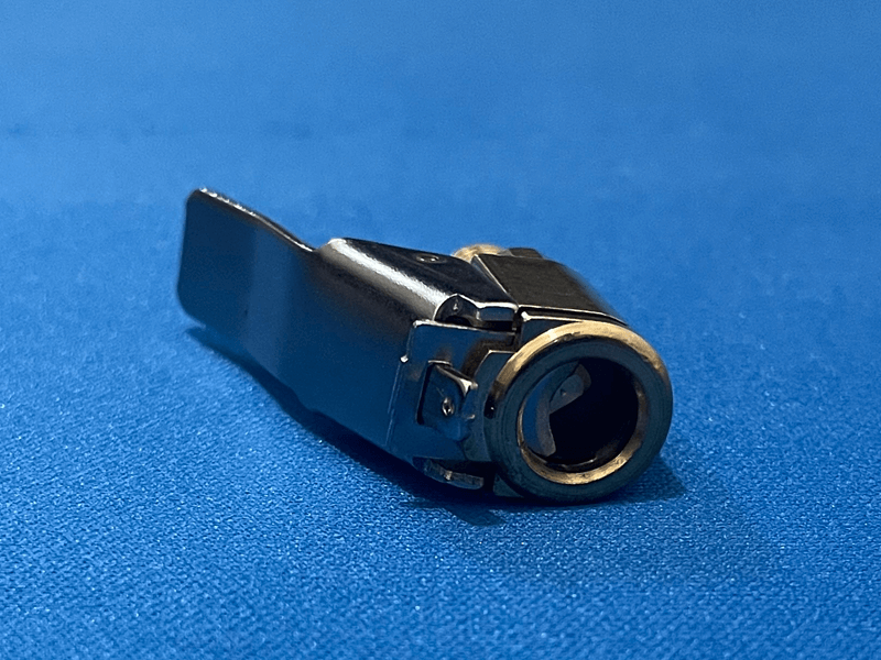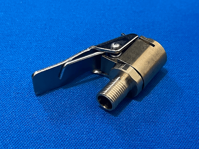 閉鎖フローロックとは、主にタイヤの空気入れ(エアポンプやコンプレッサー)で使用されるクリップ式のノズルアダプターのことで、レバーを操作するタイプ(オープンフロー)よりも操作性が良いです。