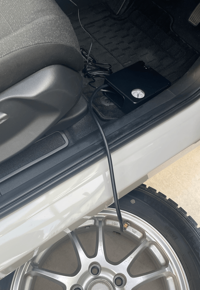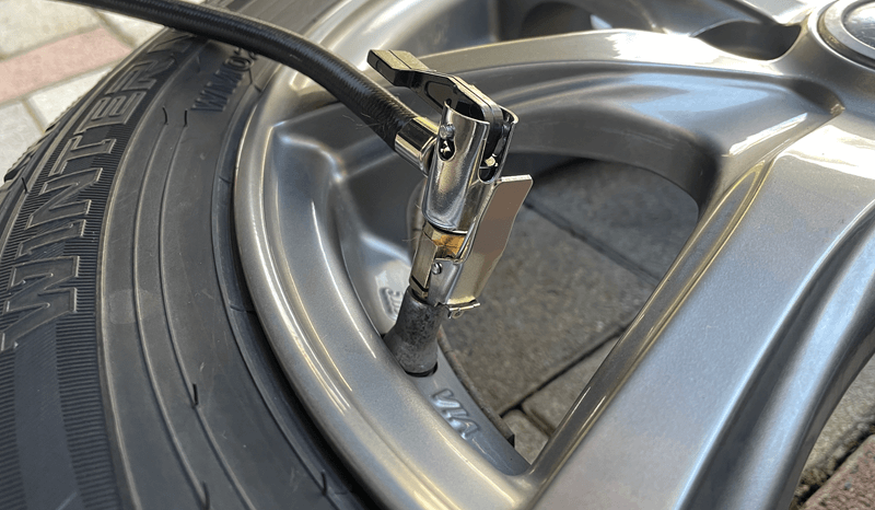 自宅でタイヤ交換をするので空気圧調整はミニエアーコンプレッサーを使っていまが、今季スタッドレス交換でバルブにセットしても中々エアーが入らず。