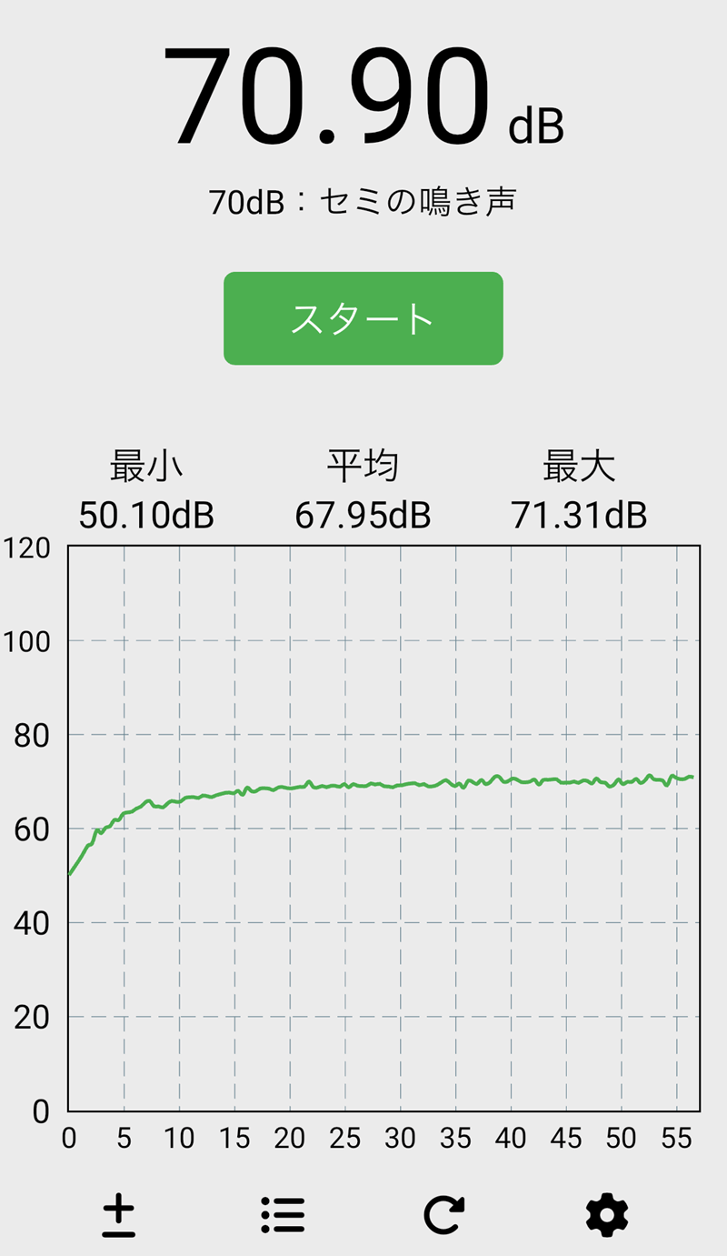車内は防音効果が高いので一気に70dB以下まで落ちてくれます。