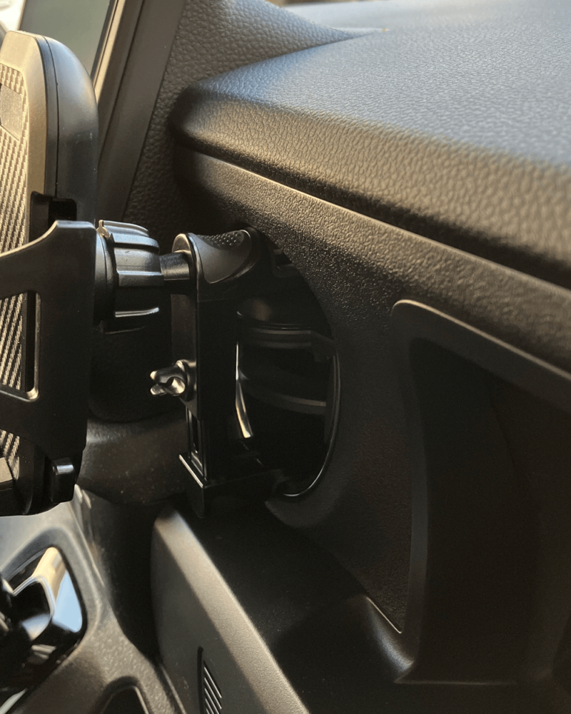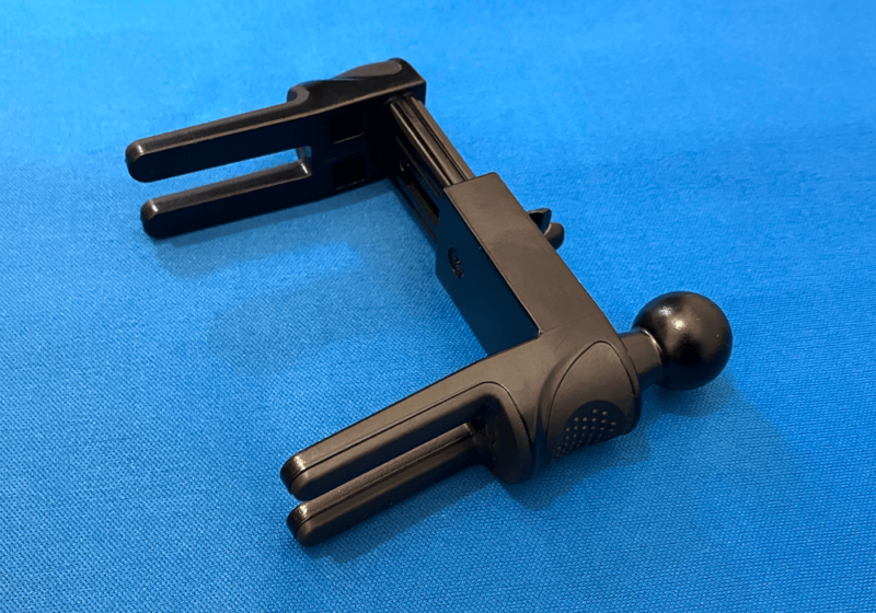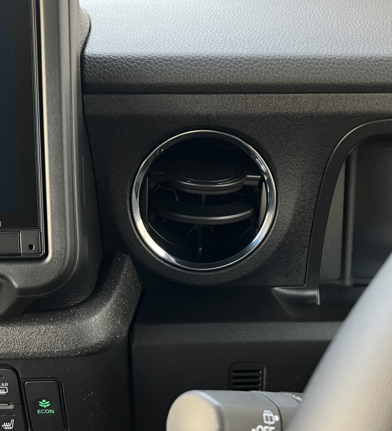 ダッシュボードへの直接貼り付けを避けてエアコン送風口への取り付けを目論んだのですが、厄介なのが独特の丸型形状。