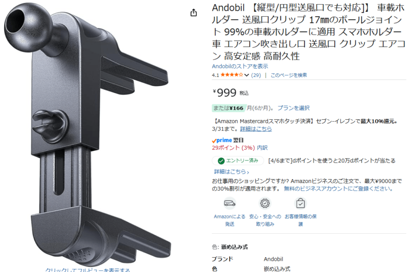 ホルダーの固定は一般的な17mmのボールジョイント式。