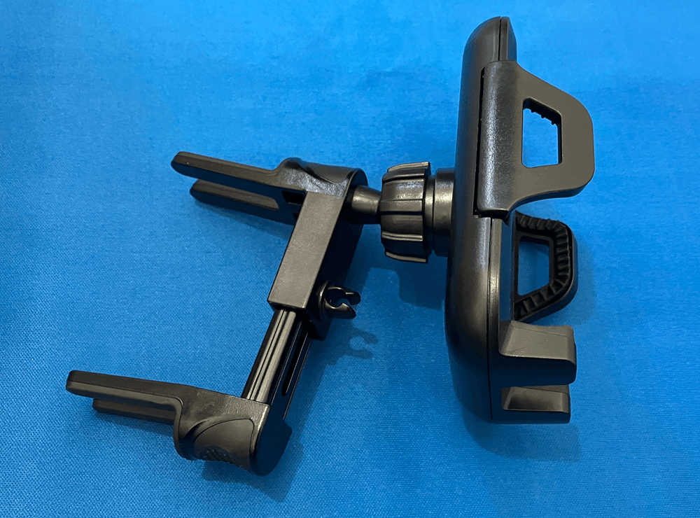 ダッシュボードへの直接貼り付けを避けてエアコン送風口への取り付けを目論んだのですが、厄介なのが独特の丸型形状。